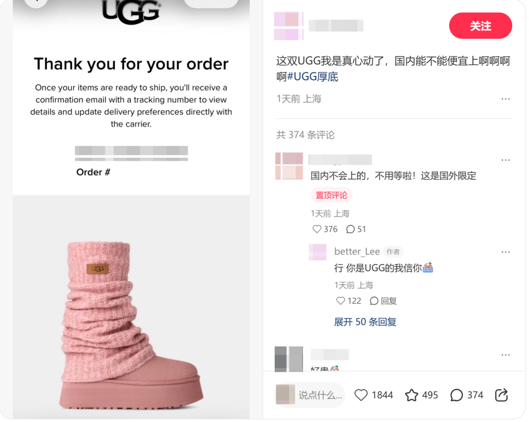 近期,UGG推出新一季产品,其中「粉色堆堆袜靴」Classic Mini Dipper Legwarmer俘获众多女生心。该鞋款仅在北美官网上架,售价200美元(约合人民币1400元),目前所有码号均已断货。