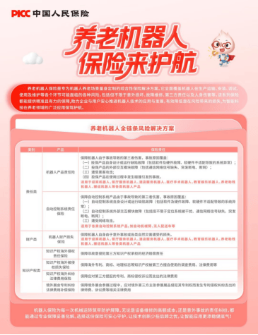 中国人保养老机器人全链条风险解决方案,图源:中国人保官网