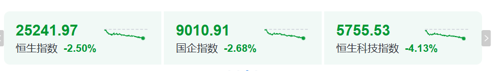 港股方面,恒生指数跌2.5%,恒生科技指数跌超4%,港股市场也未能独善其身。