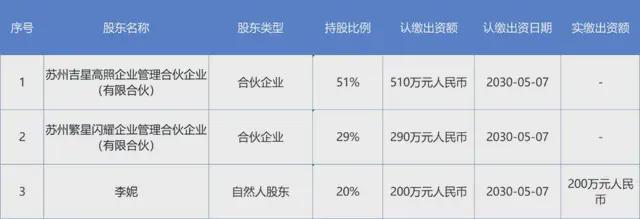 苏州一星机器人股东信息显示,其与吉利关系匪浅。实控人李星星为吉利集团监事兼澄星股份实控人;董事长潘运滨同样来自吉利体系内部,曾任吉利卫星板块总裁,现任吉利半导体公司CEO;李妮则是李星星的妹妹,是凯心投资执行董事和法人代表。