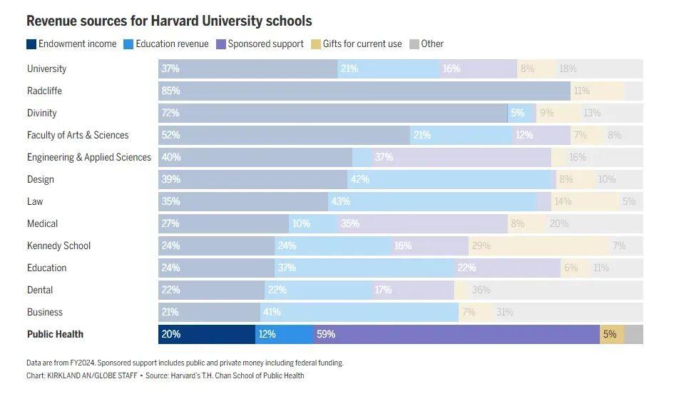 哈佛大学各学院收入来源,图源《波士顿环球报》