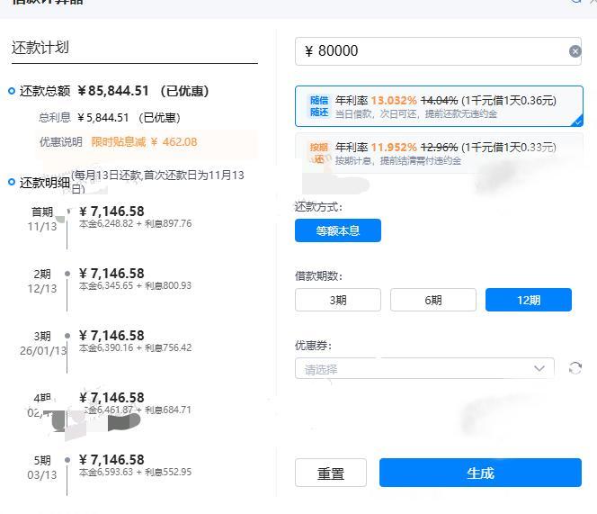时代周报记者调查发现,蚂蚁消金、美团、京东、度小满等平台标注的贷款利率上限已全面降至24%及以下。其中,多家平台推出新客30天免息、利率折扣等优惠活动,甚至主动下调利率以吸引客户。例如,某平台工作人员向记者展示的还款计划显示,随借随还模式年利率从13.032%降至11.052%,按期归还模式年利率从11.952%降至9.972%。