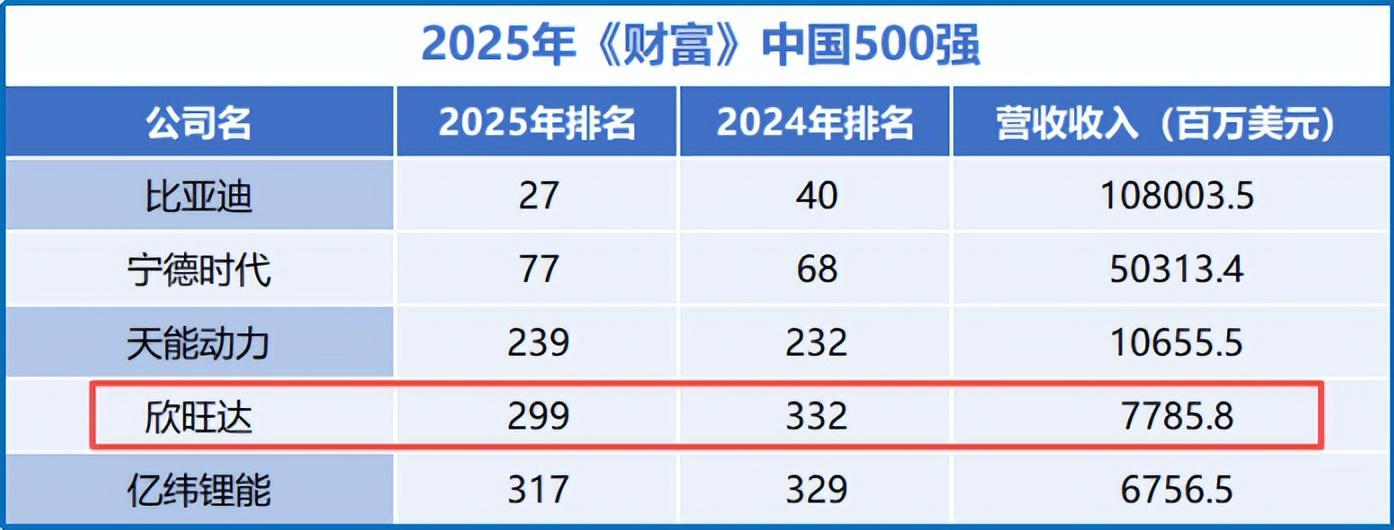 1997年,深圳一间普通民房里,欣旺达还只是一家靠镍氢电池谋生的小作坊。谁也想不到,27年后的2024年,这家曾经名不见经传的小企业,已跻身全国动力电池装车量前十,年营收突破560亿元,并再度登上《财富》中国500强榜单,排名超过亿纬锂能,稳居第299位,实现了从“丑小鸭”到“白天鹅”的华丽蜕变。