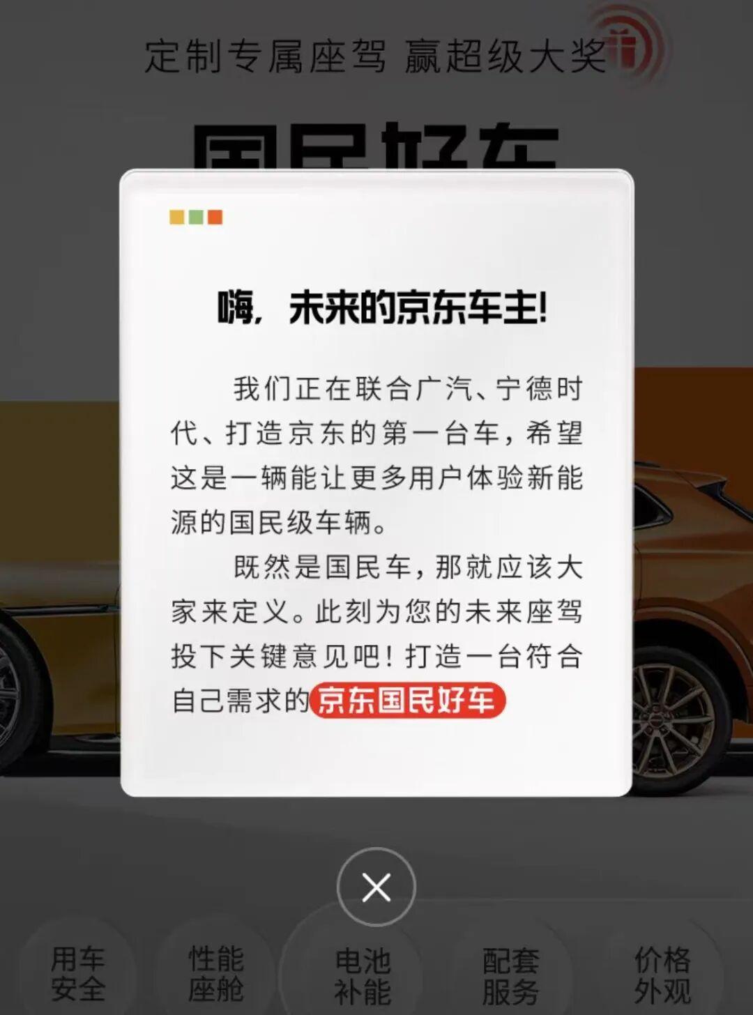 在"国民好车"计划中,京东试图构建"买、配、养、用、换"的全生命周期服务。消费者不仅可定制汽车颜色、座椅等基础配置,更能参与造型设计、电池包选择甚至销售方式决策。这种深度定制模式,将汽车消费从低频交易转变为高频服务互动。
