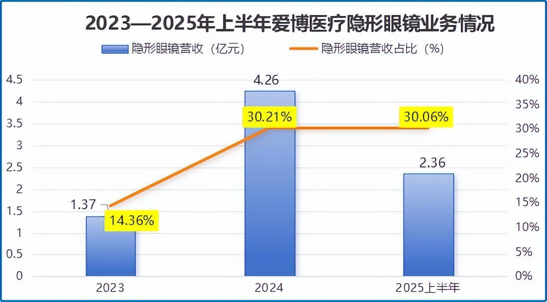角膜塑形镜(OK镜)是青少年近视防控的核心产品。爱博医疗2019年推出首款“普诺瞳”后,凭借试戴片减少和出厂价提升实现增长。但2025年上半年,受市场竞争加剧影响,该板块收入1.19亿元,同比增速仅5.63%,同期行业龙头欧普康视则下滑4.58%。
