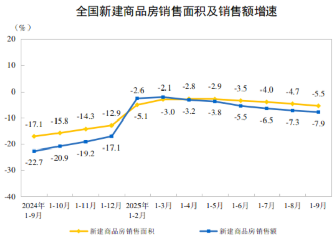 然而,作为中国经济压舱石的房地产行业却面临一定挑战。前9月,新房销售额为6.3万亿元,降幅达到7.9%。商品房待售面积增加,各类指数下跌,意味着房地产库存仍在上升。房企资金链依然紧张,新开工和施工面积下滑,需求端也有待反弹。