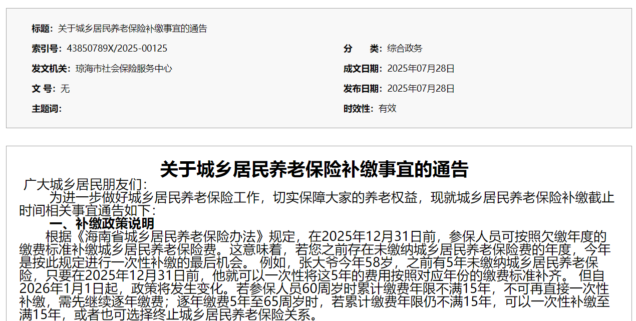 海南也出台类似政策,但实施时间推迟至2026年1月1日。除上述两地外,其他地区暂未调整补缴政策,居民仍可按原规定办理。