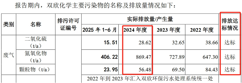 在IPO过程中,交易所对双欣环保的环保情况进行了多次问询,特别是对其如何降低“双高”影响的问题尤为关注。其中,污染物排放是否达标成为了问询的重中之重。双欣环保在回复中坚称,报告期内其和子公司双欣化学的废气、废水排放均达标。然而,事实真的如此吗?