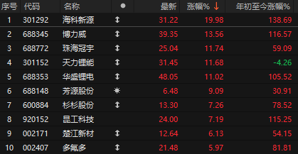 10月18日,奇瑞汽车在2025全球创新大会上展出犀牛S全固态电池模组。此前一日,国轩高科宣布G垣准固态电池“001”号测试车累计行驶里程接近2万公里,多家车企匹配车型正在测试中。受此消息刺激,A股固态电池板块开盘大涨,海科新源涨停,博力威、珠海冠宇等涨超10%。