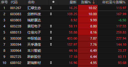 周末机构将明年1.6T光模块需求上修至1500万只。花旗银行指出,VR200NVL144机架的1.6T光模块GPU配比或从1:2.5提升至1:5,若供应商及时跟进订单,2026年行业需求可能增至2000万只以上。供应短缺或导致行业平均售价同比持平,构成另一上行风险。今日光模块板块反弹,汇绿生态、剑桥科技等涨停,中际旭创大涨7.87%。