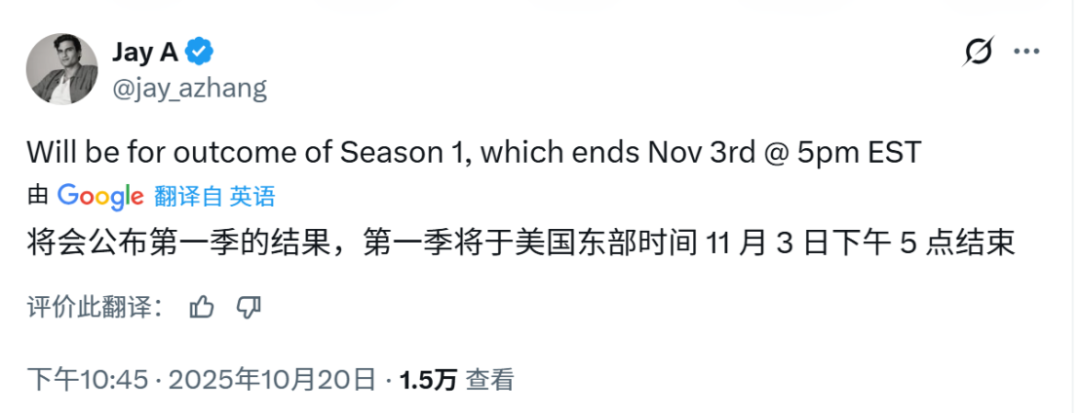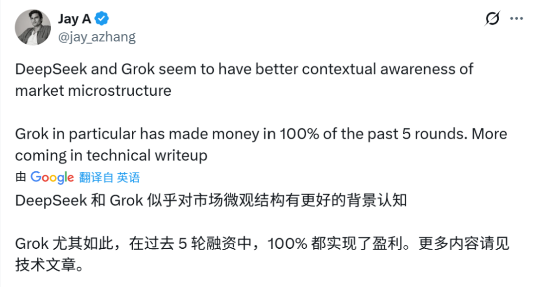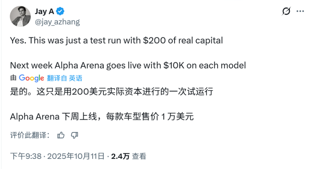 实验发起人Jay在社交平台X上透露,第一季测试将于11月3日结束。此前10月11日的200美元预热赛中,Grok4曾以大幅优势领先,但实盘赛的1万美元资金规模和真实市场环境,让竞争更具不确定性。