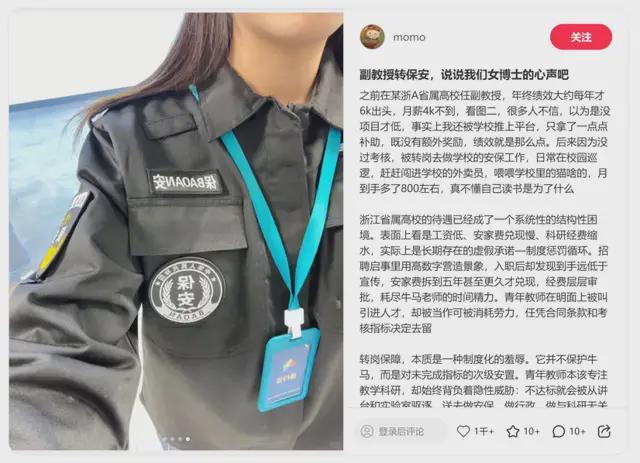 近日,一则来自小红书的帖子在网络上引发广泛关注:浙江某高校一名拥有华五高校本科学历及QS前50高校博士学位的副教授,因入职五年后未通过考核,从教学科研岗位转岗为校园保安。更具戏剧性的是,她透露新岗位的工资比此前副教授月薪高出800元。这一事件看似荒诞,却折射出中国科研教育体系中存在的深层问题,包括“非升即走”制度的执行偏差、“重科研轻教学”的评价标准,以及科研人员生存压力与国家科技进步之间的矛盾。