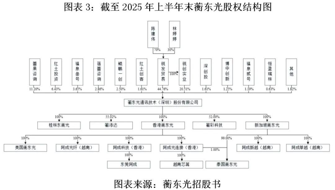 招股书显示,截至招股说明书签署日(2025年9月17日),锐发贸易直接持有蘅东光44.76%的股份,通过其全资子公司锐创实业间接持有该公司20.51%的股份,合计持有其65.27%的股份,是蘅东光的控股股东。