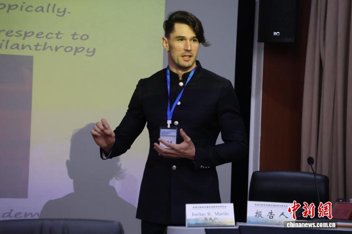 9月27日,马兆仁在郑州大学举办的“东西方哲学古典学”国际学术研讨会上进行报告。(受访者供图)
