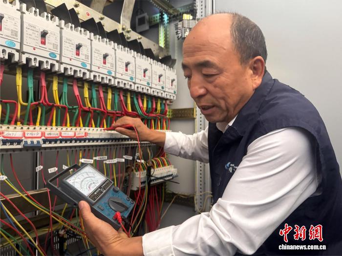 图为额日和向记者展示电流检测结果。中新网记者 奥蓝 摄