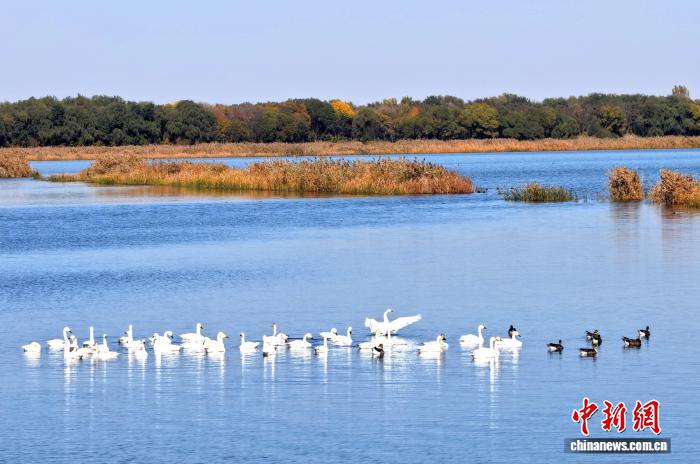 中新社河北衡水11月4日电 (裴国荣 崔志平 张凯)近日,随着小天鹅、红嘴鸥等80余种、逾万只候鸟陆续飞抵河北衡水湖国家级自然保护区,“京津冀最美湿地”衡水湖开启“黄金观鸟季”。