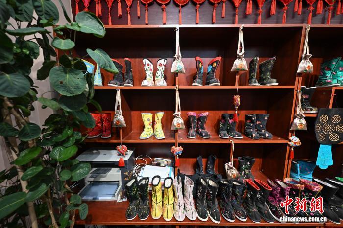 深秋的内蒙古兴安盟,图什业图亲王府内,两位绣娘正以指尖轻舞细线,针尖在绣面上游走如飞,一朵朵牡丹在她们的巧手下逐渐“绽放”,吸引了众多游客的目光。