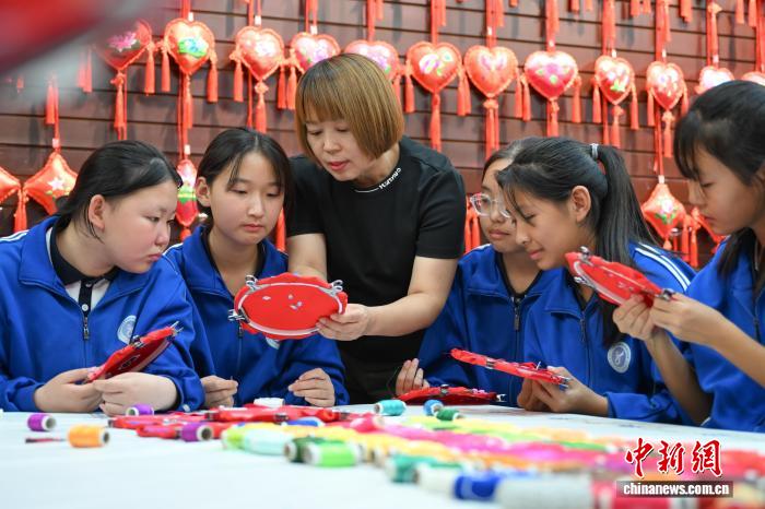 9月26日,内蒙古科右中旗的一所学校社团内,摆满了同学们的刺绣作品,每一件都透露出对传统文化的热爱与传承。贝赫 摄