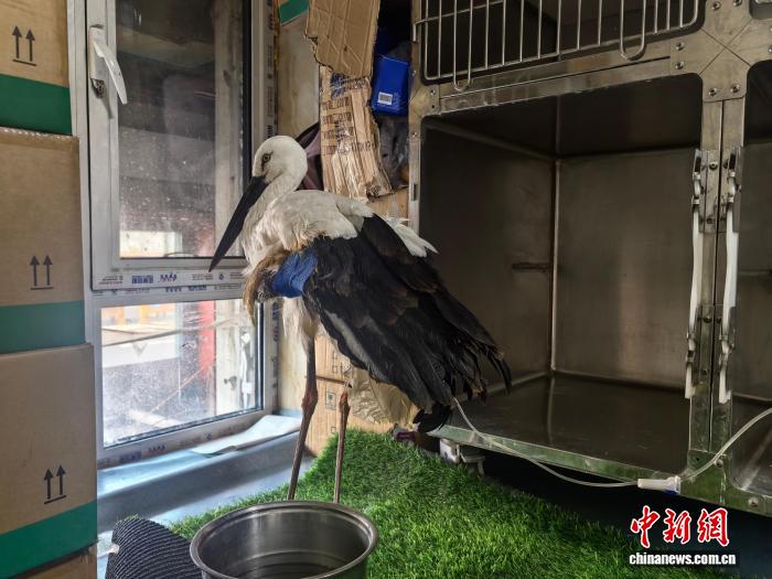 受伤的东方白鹳正在接受治疗。 石洪宇 摄