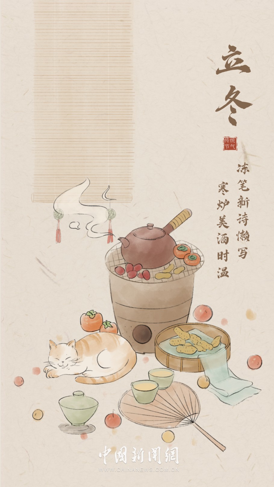 10. “冻笔新诗懒写,寒炉美酒时温。”(唐·李白《立冬》)古人立冬,以诗酒相伴,今人亦可如此。