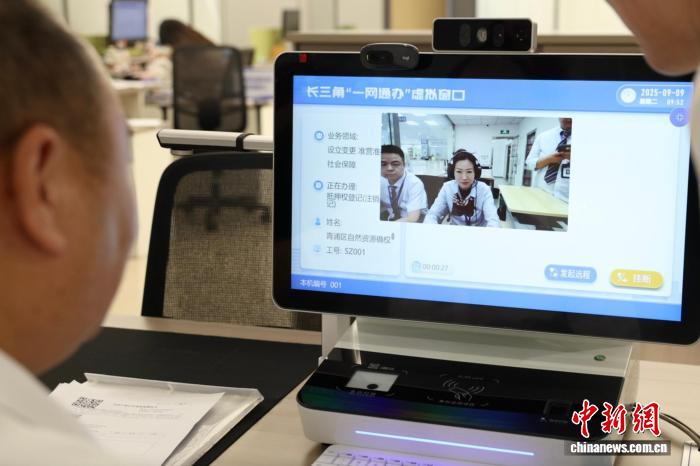2025年9月,浙江嘉善,当地窗口工作人员通过长三角“一网通办”虚拟窗口与上海青浦的窗口工作人员进行连线。孙杨洋摄
