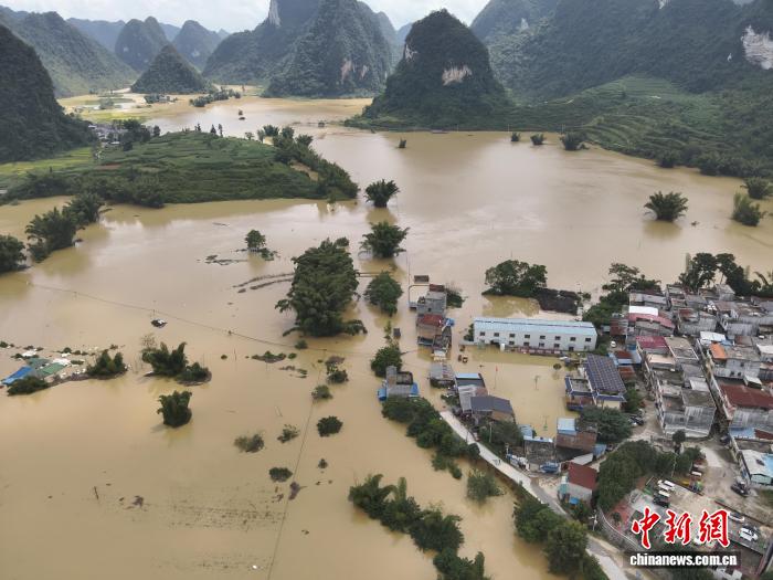 在广西百色靖西市壬庄邦亮村,内涝积水淹没了稻田和村庄。李长慷 摄