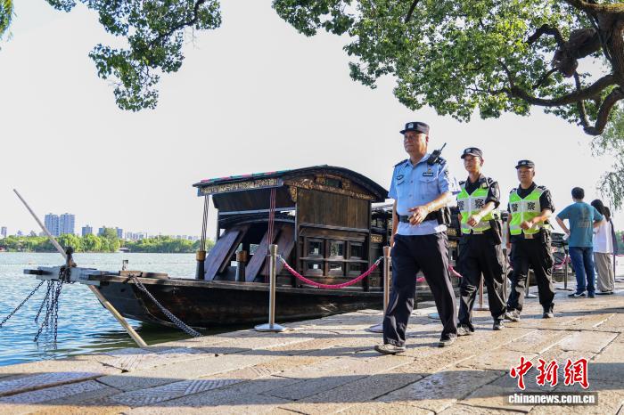 高峰在湖心岛巡逻。南湖公安供图