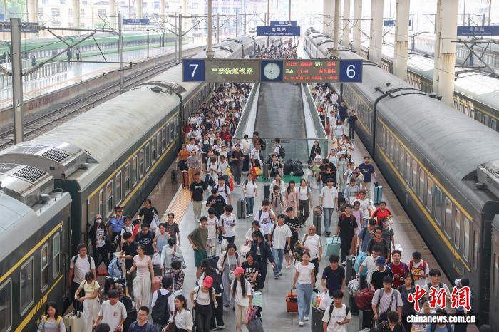从客流时间分布来看,10月8日客流高峰主要集中在上午9时至12时、下午14时至17时,整体呈现潮汐式返程客流高峰。为保障旅客国庆中秋假期顺利返程,南铁今日计划加开旅客列车354列,其中夜间高铁88列,全力开足运能,方便旅客出行。
