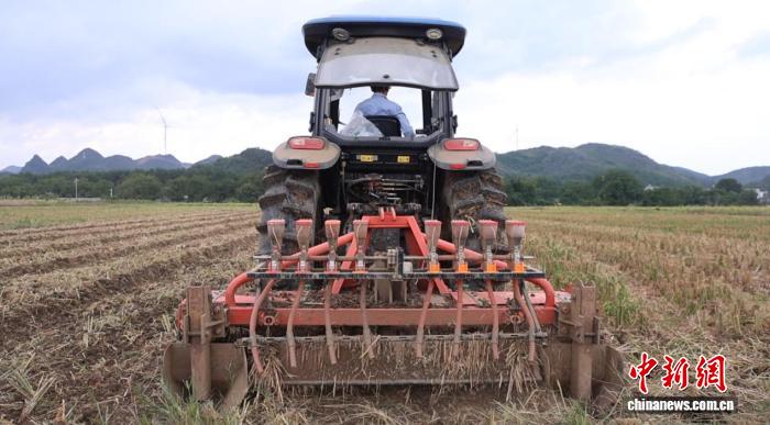 江华县涔天河镇水东村的油菜机播现场同样忙碌。机手王青佳熟练操控油菜直播机,在连片农田里匀速行驶,机器驶过之处,翻耕、下种、覆土等工序一次性完成,田面平整且种子分布均匀。