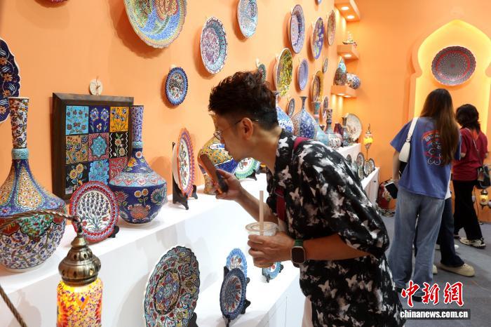 10月18日,2025中国景德镇国际陶瓷博览会在“千年瓷都”江西景德镇盛大开幕,图为民众参观展销的土耳其传统手工瓷器。 中新社记者 刘占昆 摄