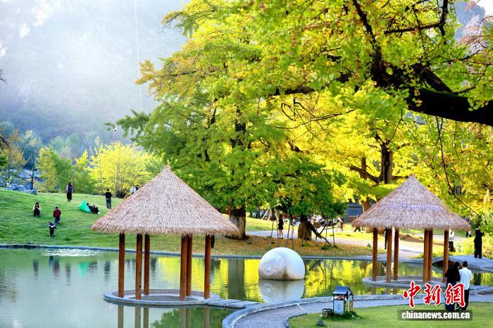 10月15日,银杏披金引客来。高琼 摄