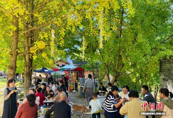 面对银杏观赏季节性强的特点,徽县委书记王福全介绍说:“我们以银杏为媒,不仅共赏山水神韵,更共促乡村振兴。”如今,田河村通过民宿、火锅集市等新业态,实现从“一季秋”到“全年游”的延伸;名优特产展、非遗文创、书画进景区等活动贯穿秋季,让千年银杏真正成为富民增收的“金色产业”。