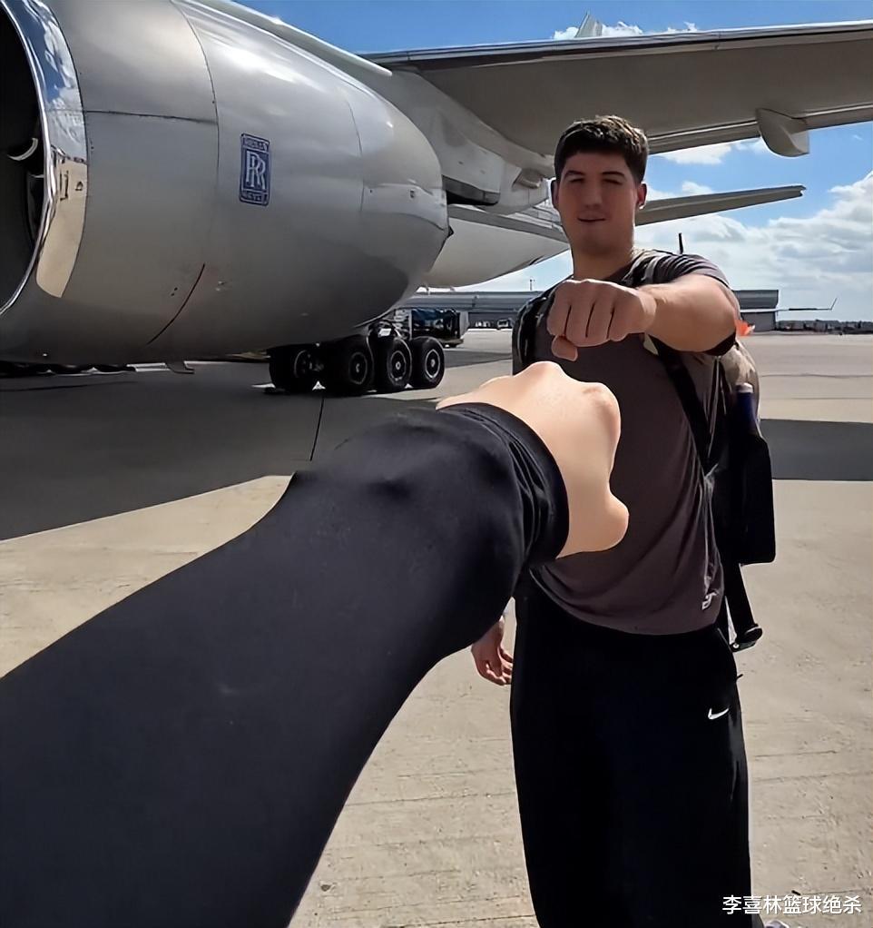 在出征照片中,杜兰特神态轻松,背着标志性的背包,“书包杜”的传统得以延续。他头戴一顶绿色帽子,在登机前,他一脸笑容地与拍摄视频的火箭工作人员碰拳打招呼,显得亲和力十足。