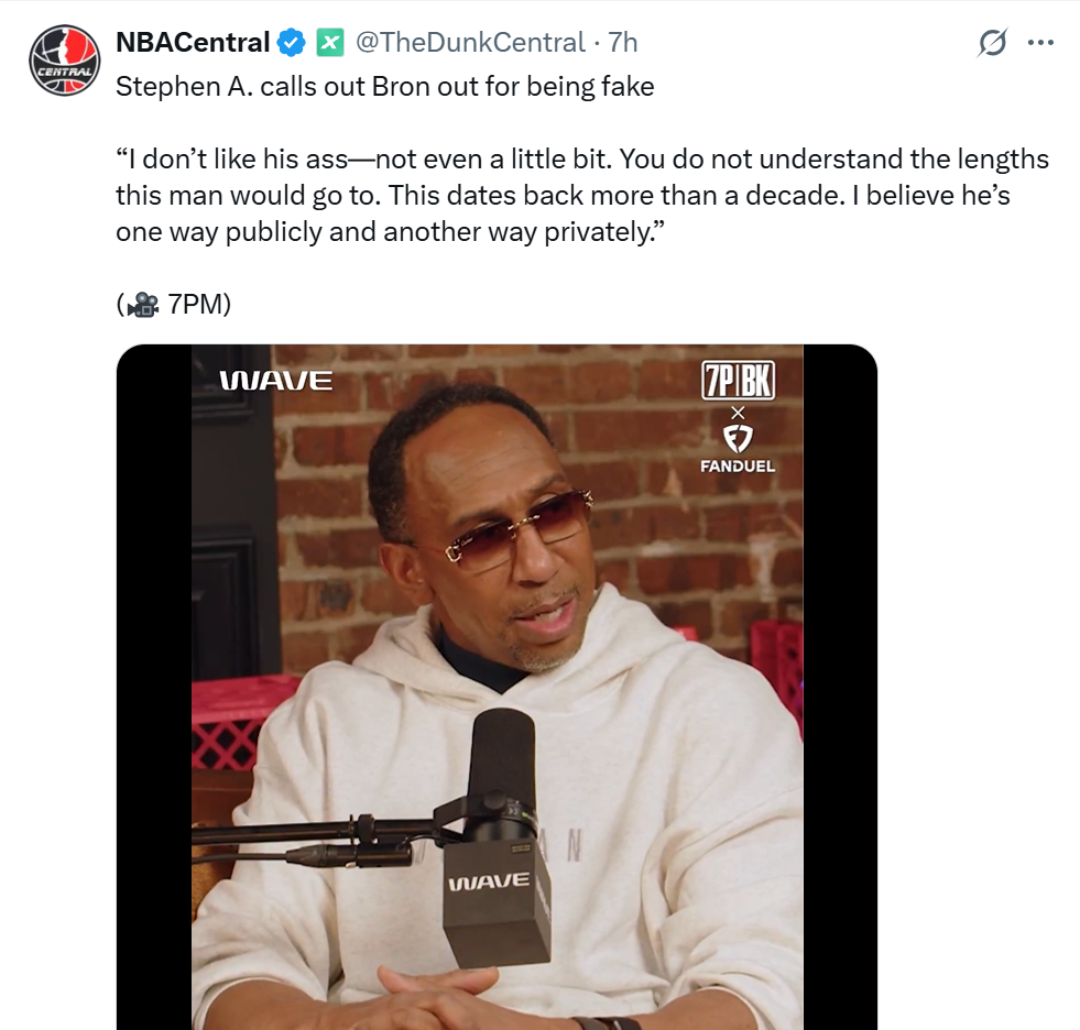 北京时间10月21日,雷速体育消息,知名体育评论员A·史密斯在参加7PM in Brooklyn节目时,对湖人球星勒布朗·詹姆斯发表了尖锐批评,直言其存在公开形象与私下行为严重不符的问题。