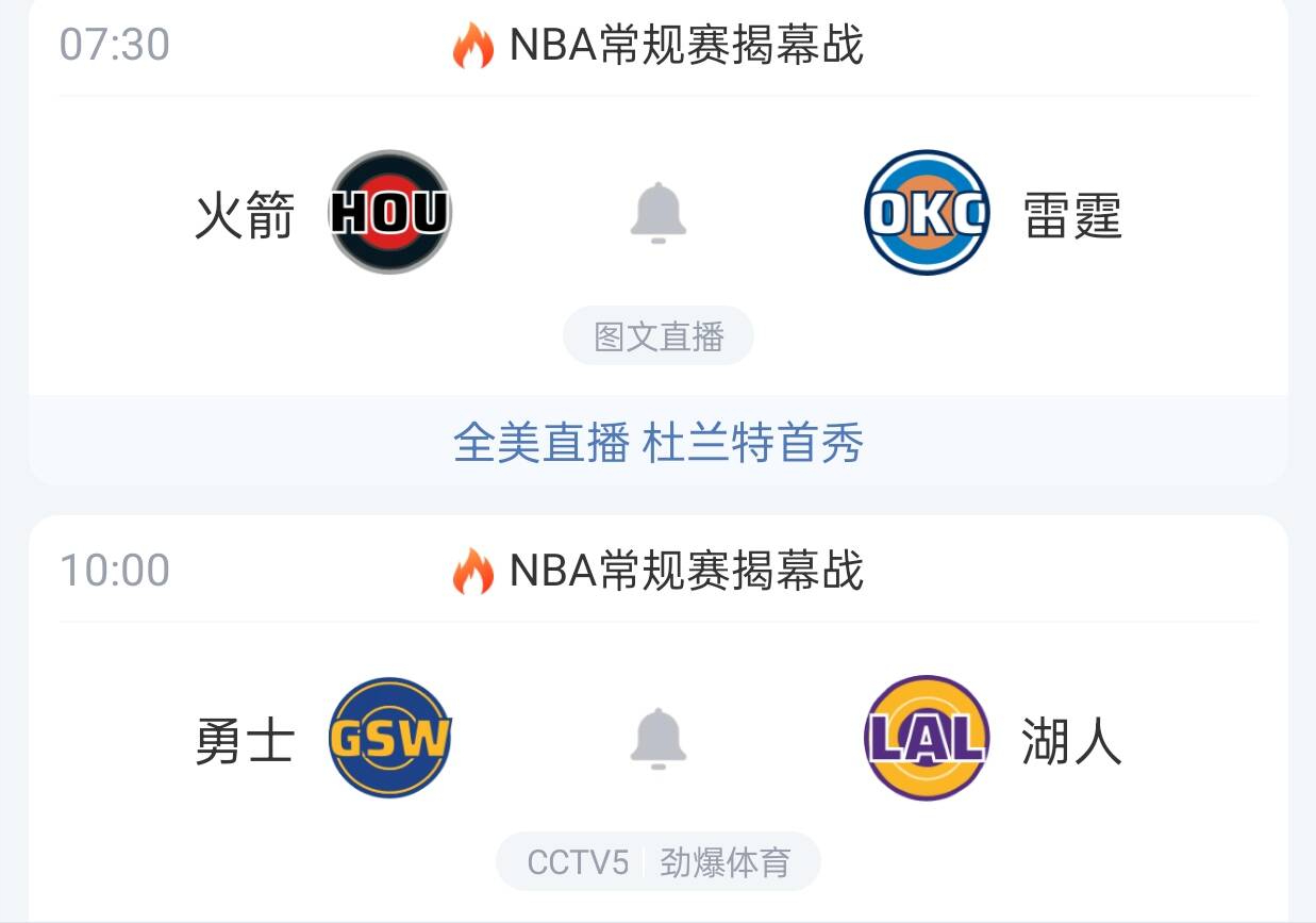 首场对决:火箭VS雷霆,北京时间10月22日7:30