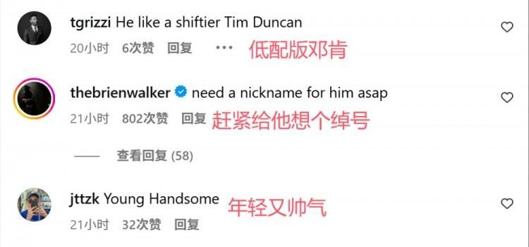 与国内网友的冷静态度形成鲜明对比的是,美国网友对杨瀚森的表现赞不绝口。他们纷纷在评论区留言,有的称杨瀚森在场上无所不能,让大加索尔都为之微笑;还有的直接将他比作约基奇2.0,认为他年轻又帅气,未来可期。甚至有美国网友呼吁大家给杨瀚森起个绰号,以表达对他的喜爱和期待。