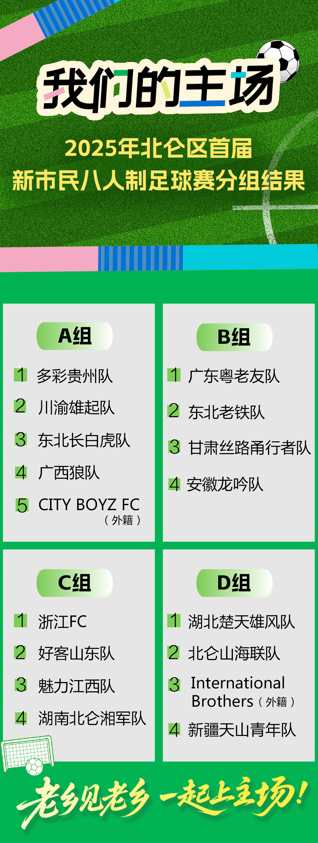 根据抽签结果,17支足球劲旅被分入A、B、C、D四个小组,每支队伍都承载着家乡的荣誉与期待。从分组名单看,各队名称地域特色鲜明,堪称一场“方言与足球的狂欢”。