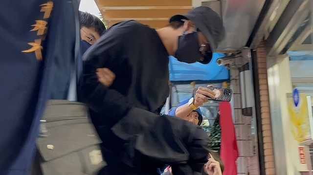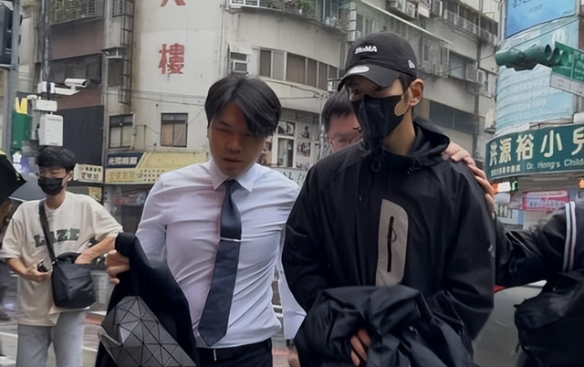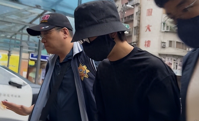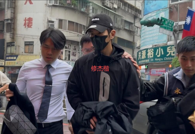 修杰楷被带走时,一身黑衣,戴着渔夫帽、口罩和墨镜,包裹得严严实实。他的手腕被衣服盖住,但明显可以看出戴了手铐,事情显然不简单。