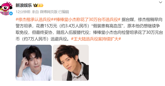 有台媒报道,修杰楷之所以被带走,并非因为妻子怀孕退役,而是因为他本应正常服役,但为了逃避,他伪造了高血压病历,随后被分配去“服替代役”。也就是说,在“服替代役”之前,他就已经造假。