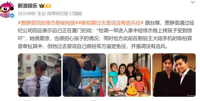 有记者联系到贾静雯,她目前在厦门拍戏,并未在台北家中。她回应称,警方直接进入家中带走了修杰楷,导致孩子们受到惊吓,她十分担心。
