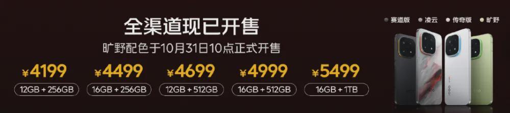 价格方面,iQOO 15提供了多种配置选择:12GB+256GB/512GB版本售价为4199元/4699元;16GB+256GB/512GB/1TB版本售价为4499元/4999元/5499元。