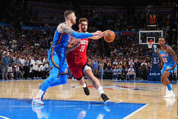 北京时间10月22日,一场备受瞩目的NBA常规赛在火箭与雷霆之间展开,双方激战至双加时才分出胜负。赛后,美媒深入挖掘了比赛中的关键细节,特别是第一个加时赛结束时的一个争议瞬间,引发了广泛讨论。