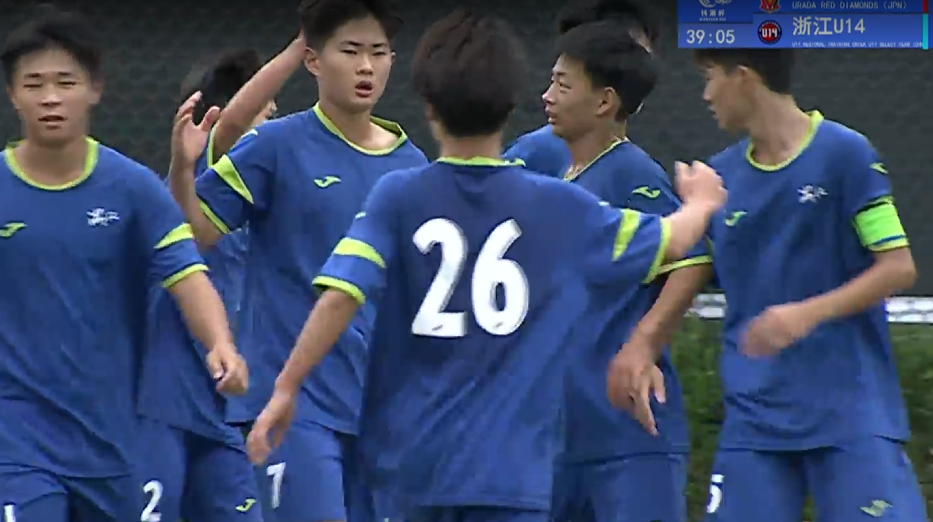 在2025年钱潮杯国际青少年足球邀请赛A组第二轮的一场焦点对决中,浙江U14队与日本劲旅浦和红钻展开激烈较量。比赛进程跌宕起伏,浙江队在先失一球的不利局面下,凭借郑哲瀚的惊艳单刀破门,于上半场补时阶段完成绝平,最终1-1战平对手。