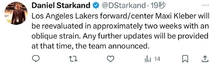 回顾克勒贝尔的季前赛表现,他仅在对阵国王的比赛中出战了10分钟,得到3分。然而,就是在这有限的出场时间里,他也遭遇了斜方肌拉伤的伤病。据医疗团队评估,克勒贝尔大约将在两周后接受进一步的评估,以确定他的复出时间。