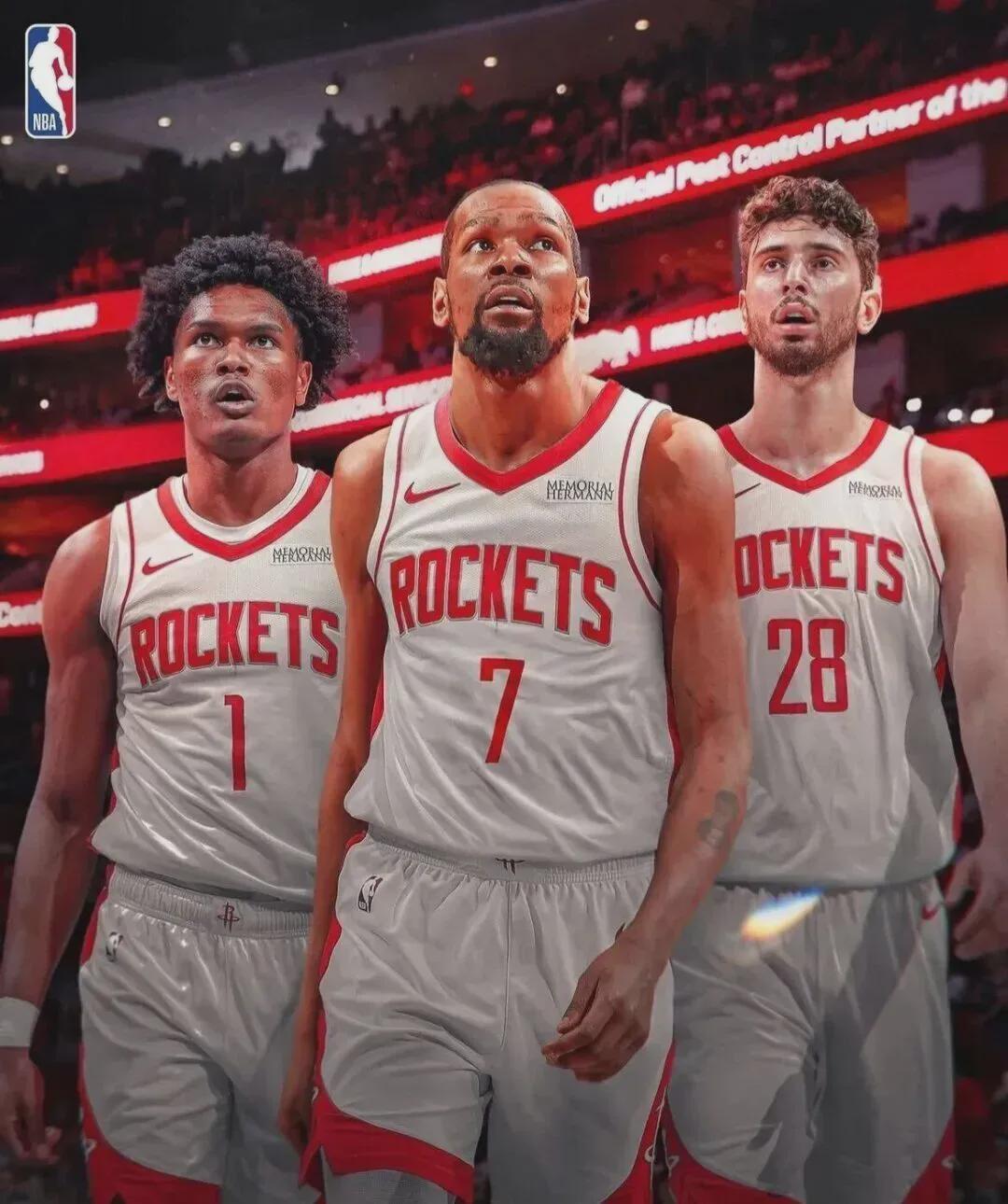 火箭此役派出了史无前例的高大首发阵容,阿门、杜兰特、小史密斯、申京和亚当斯五人平均身高达到了惊人的2米09,堪称NBA史上之最。
