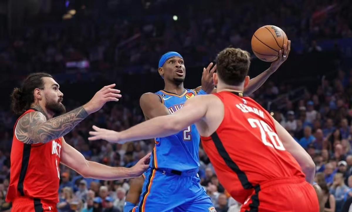 雷霆本场表现不错,球队有5人得分上双,霍姆格伦砍下28分7篮板,米契尔砍下16分,两人在亚历山大手感不佳的情况下,很好地撑起了上半场,没有让火箭拉开差距。亚历山大本场手感冰凉,但好在加时赛他找到了状态,全场26中12砍下35分5篮板5助攻,最后时刻靠着罚球,帮助雷霆锁定胜局。