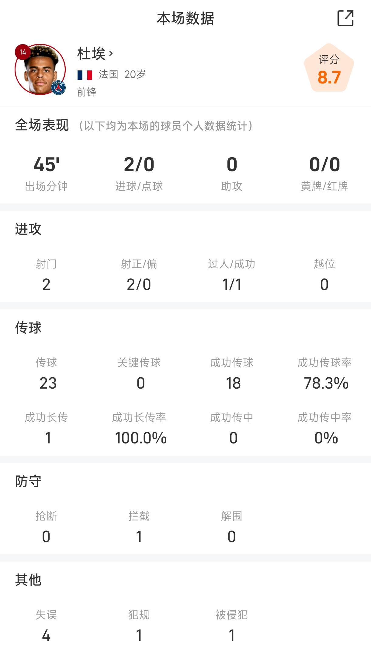 杜埃的这场表现无疑成为了巴黎圣日耳曼队大胜勒沃库森的关键。他不仅在进攻端展现了出色的得分能力,还在传球和过人方面为球队做出了贡献。这样的全面表现,无疑让球迷们对杜埃的未来充满了期待。