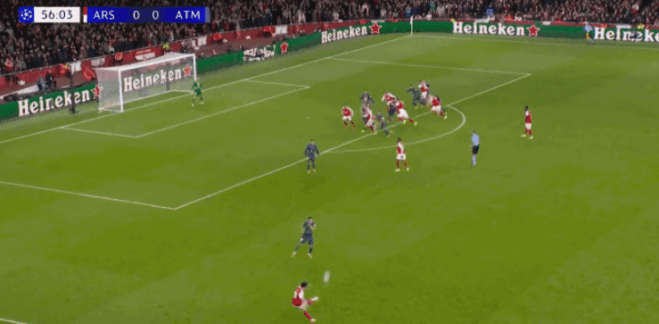 易边再战马竞加强攻势,第50分钟阿尔瓦雷斯左路摆脱防守后远射,皮球重重砸在横梁上弹出。逃过一劫的阿森纳在第57分钟利用定位球打破僵局:赖斯左路定位球开入禁区,加布里埃尔头槌破门取得1-0领先。7分钟后马丁内利左路突破后推射远角得手,将比分扩大为2-0。