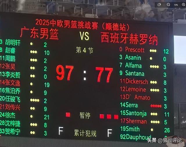 本场比赛,实际上半场结束时,比赛的悬念就已经基本消失。在杜锋教练有意练兵的情况下,替补阵容也展现出了挑大梁的能力,这支西班牙赫罗纳男篮显然无法抵挡广东男篮的攻势。