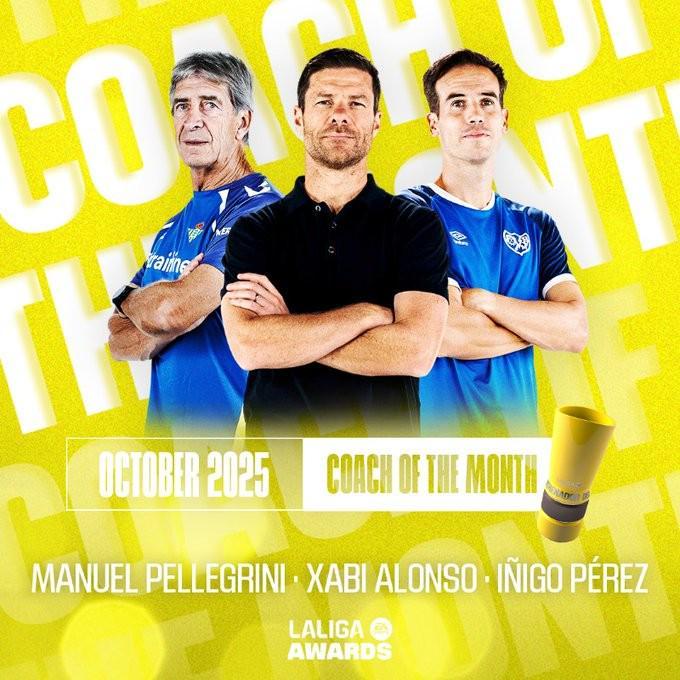北京时间10月22日,西甲联赛官方正式公布了2025年10月最佳主帅的候选名单。此次入围的三位主帅均凭借出色的执教表现和球队战绩获得提名,他们分别是皇家马德里主帅哈维-阿隆索、皇家贝蒂斯主帅佩莱格里尼以及巴列卡诺主帅伊尼戈-佩雷斯。